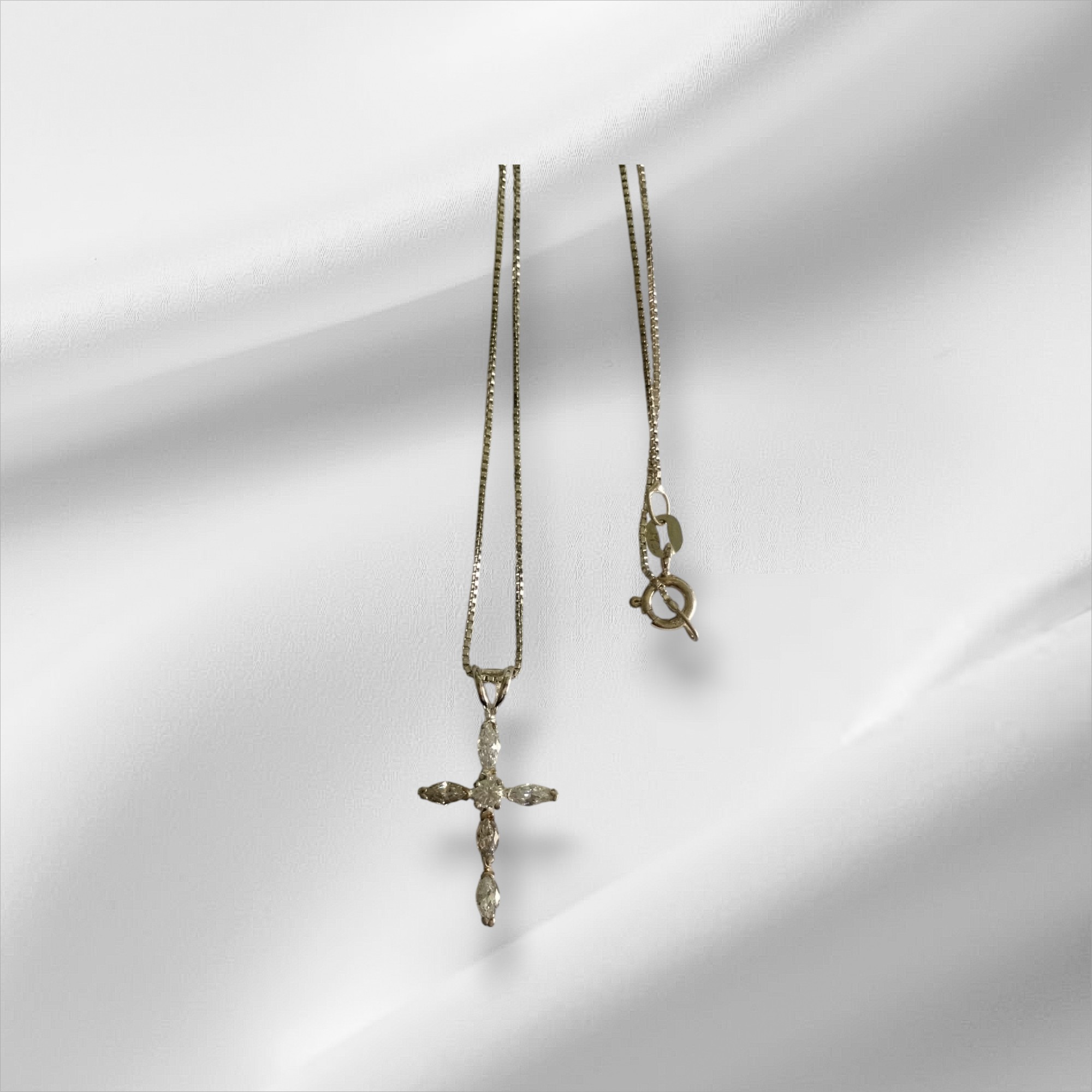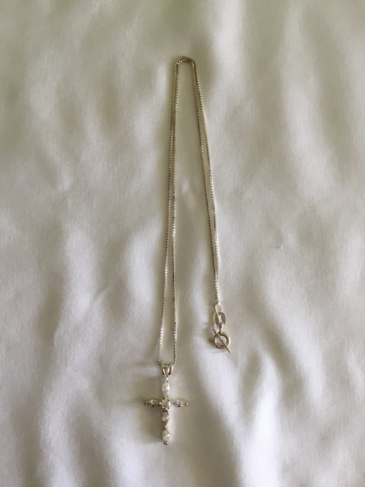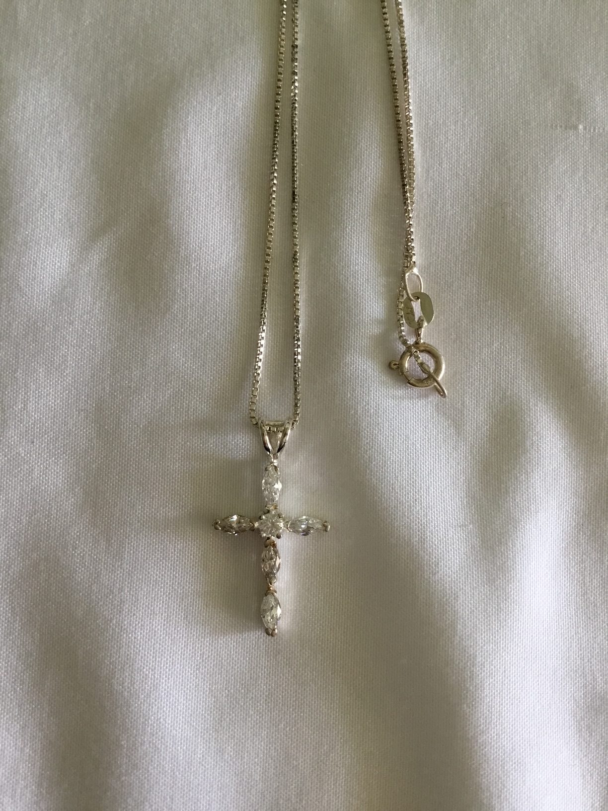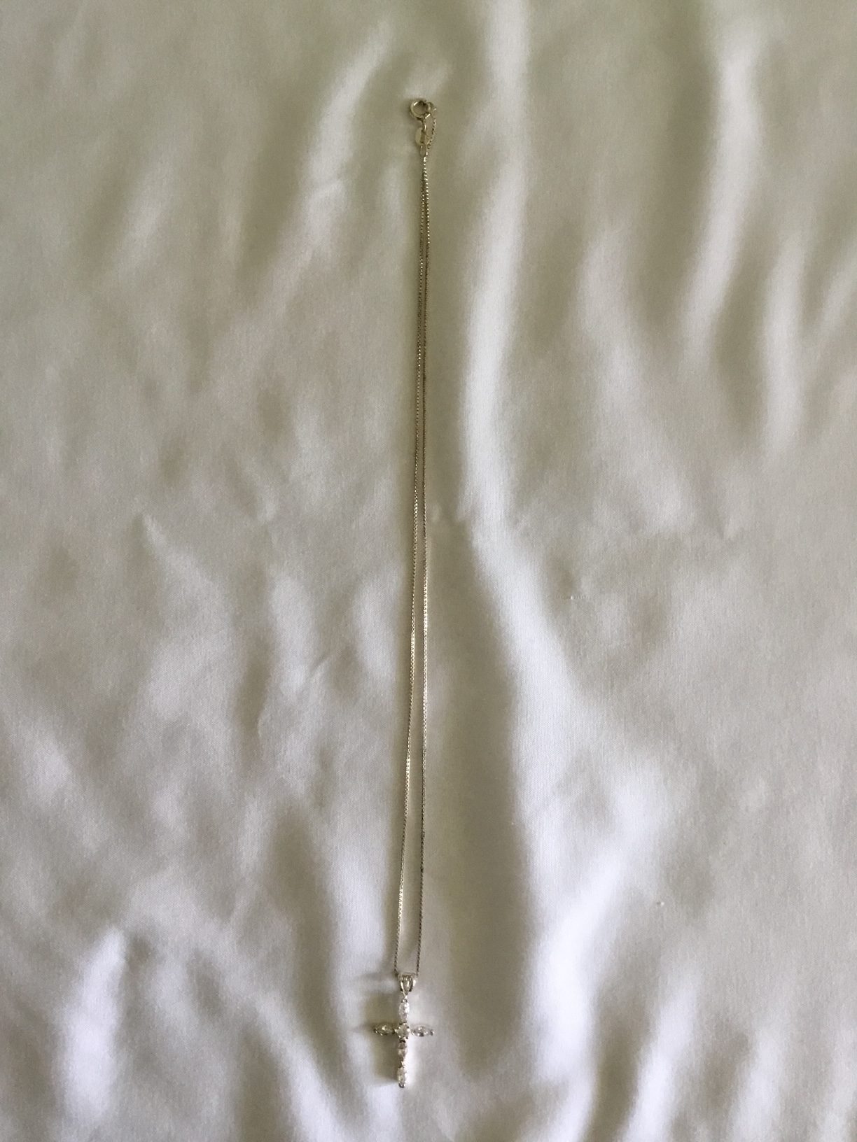 Beautiful Sterling Silver Necklace w/ CZ Cross Pendant, 18″