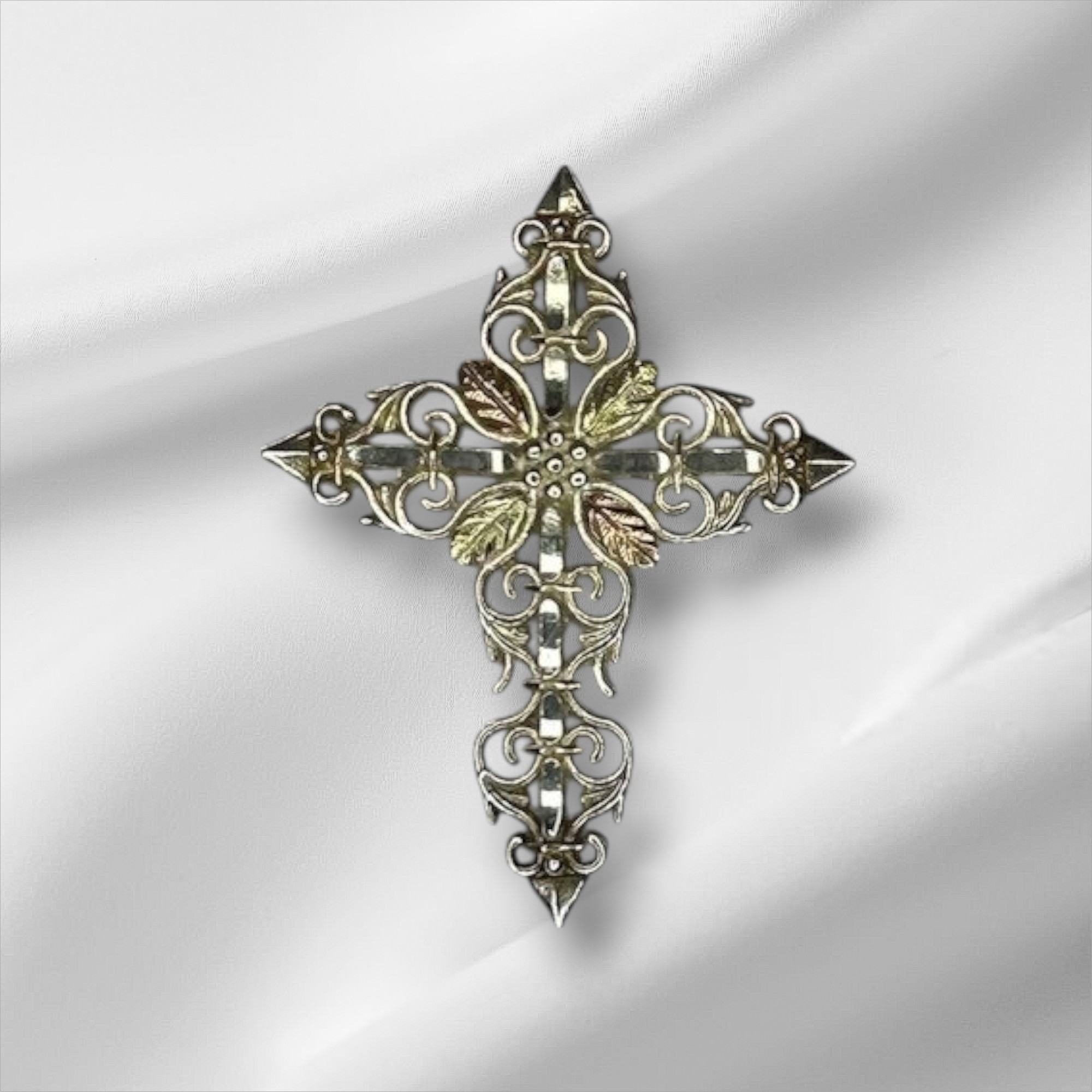 Black Hills Gold Sterling & 12K Gold Cross Pendant 1″