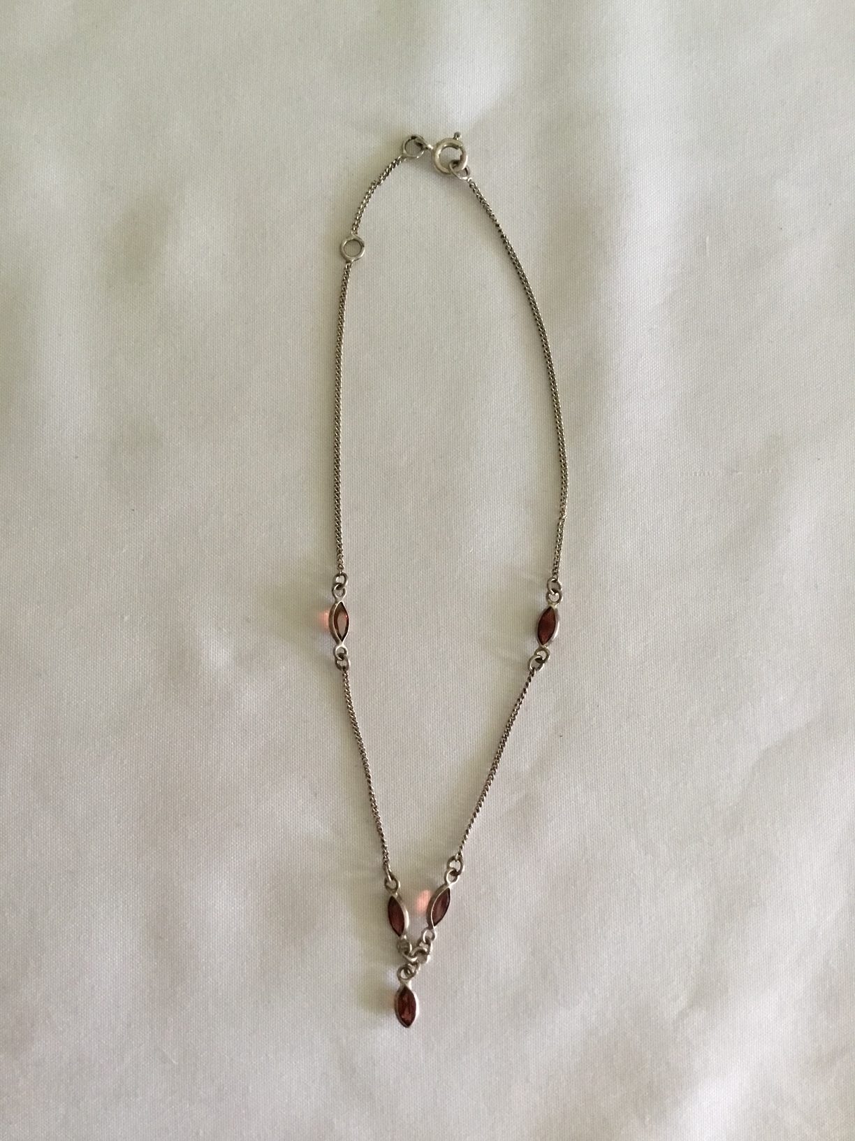 Sterling Silver Anklet w/5 Brown Gemstones 10″ or 9″ Adjustable. Very dainty. Please view images for condition and details and grade by your own grading standards.