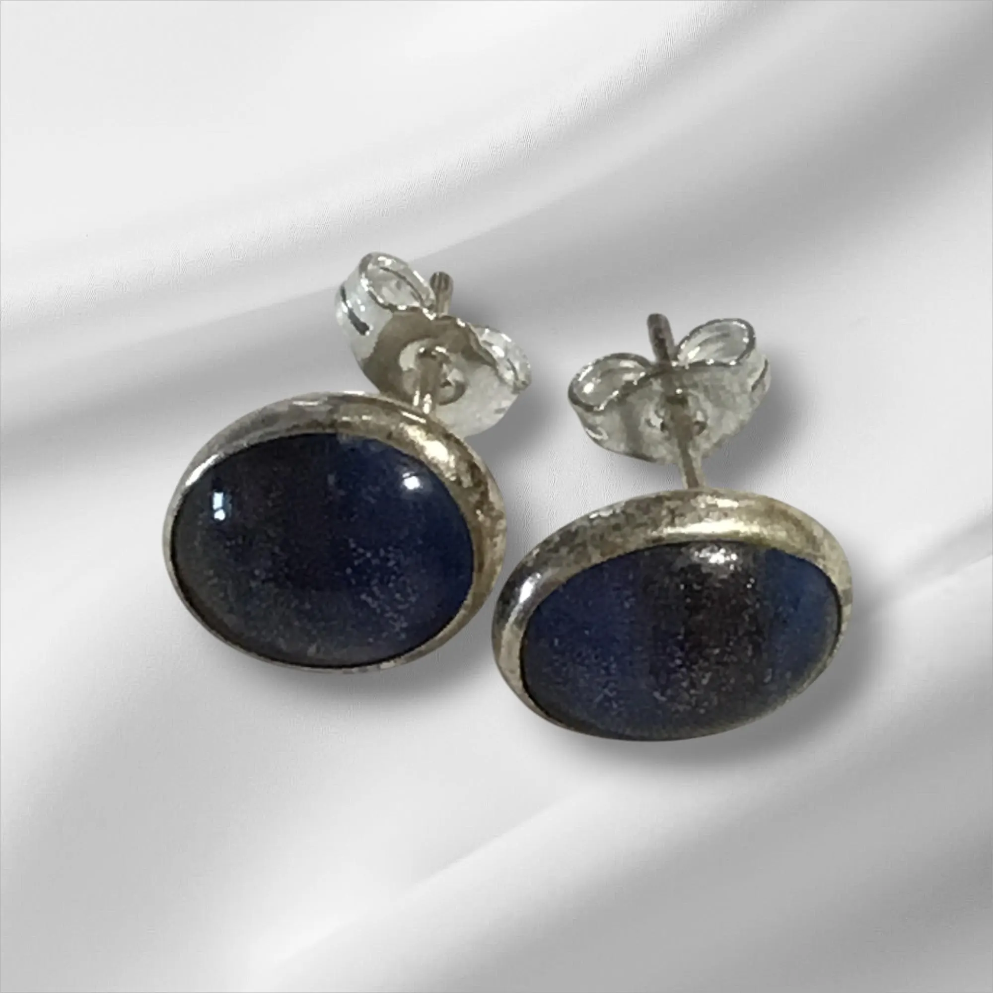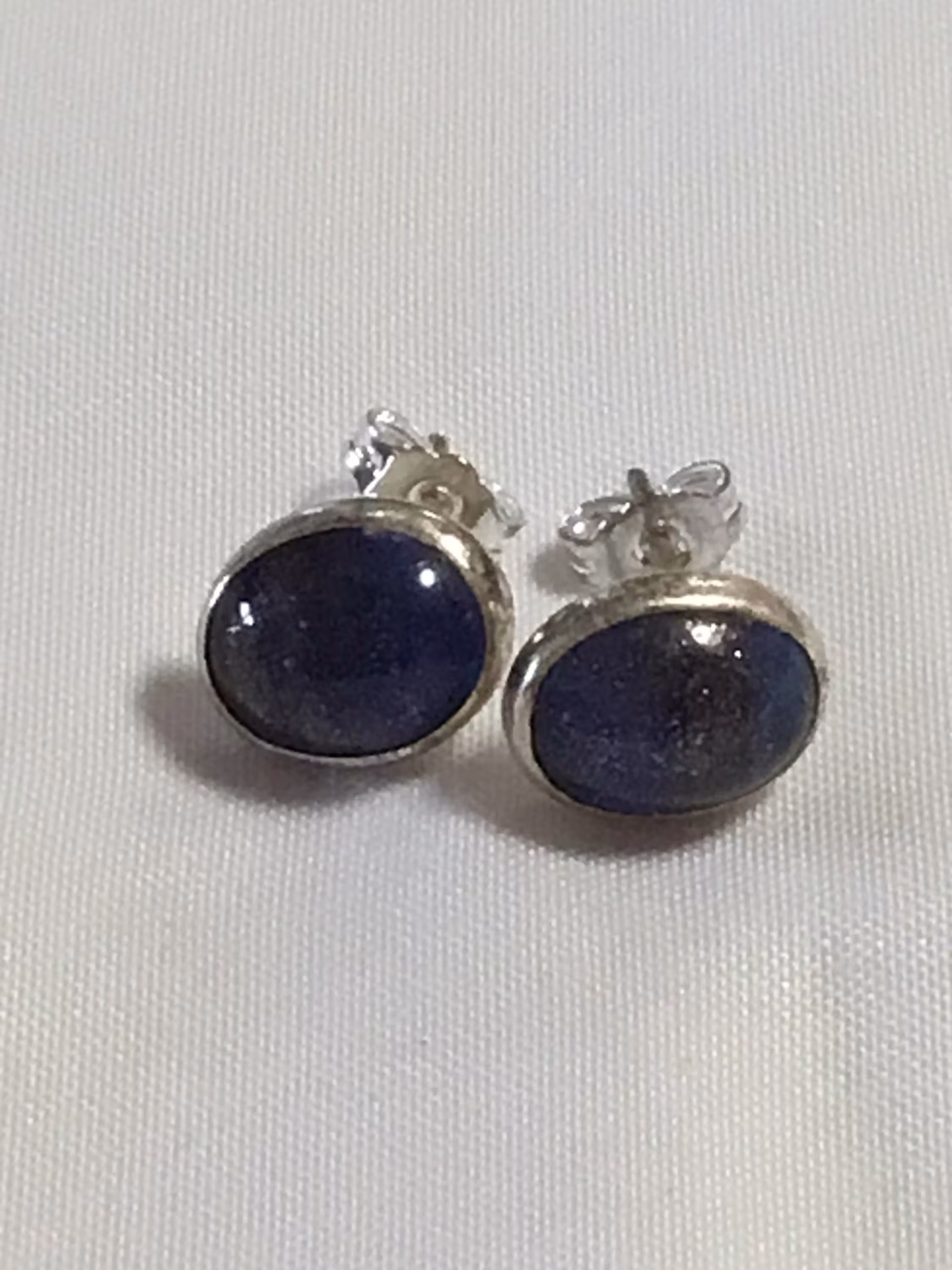 Sterling Silver Blue Stone Stud Earrings. Stone is 1/4″, marked 925. Please view images for condition and details and grade by your own grading standards.