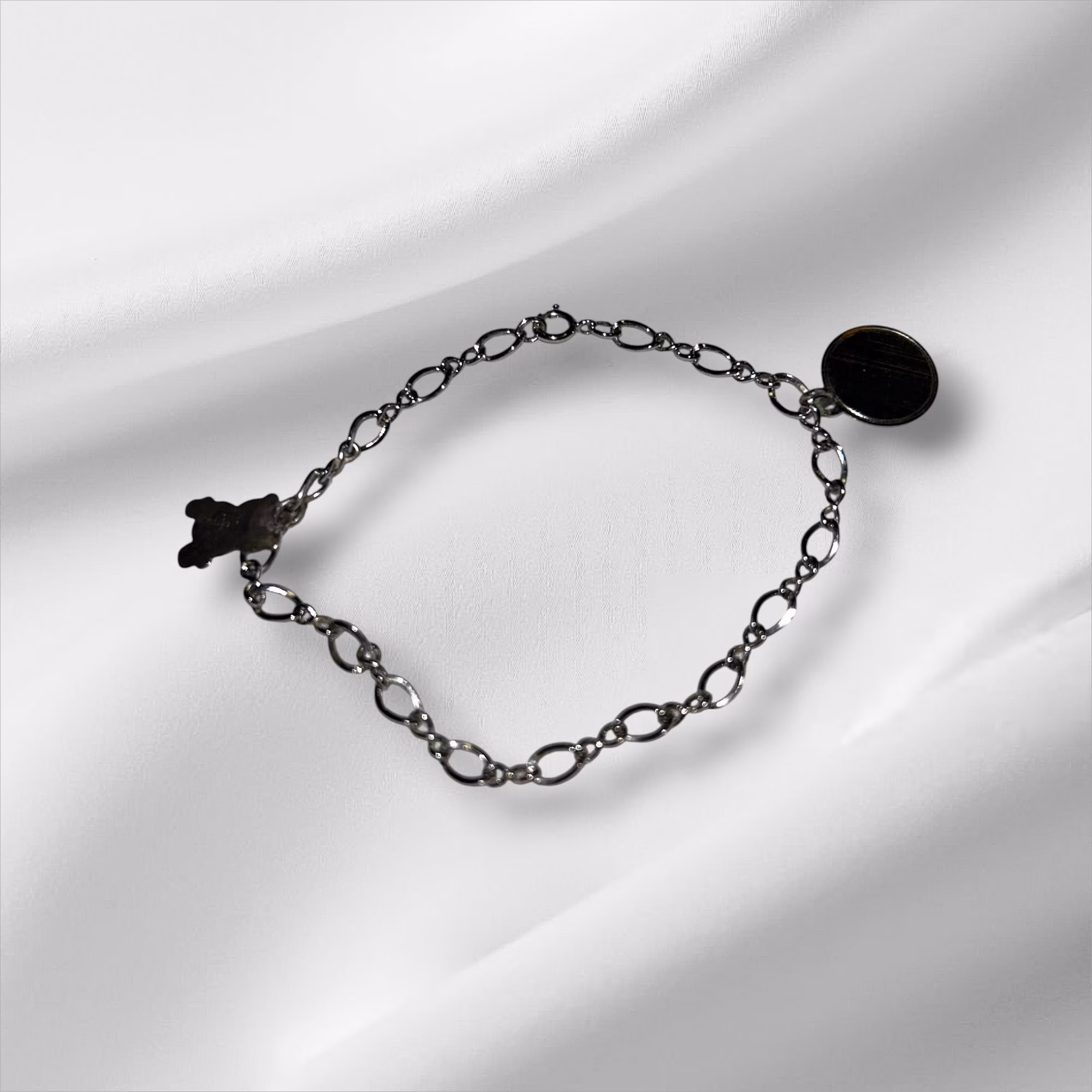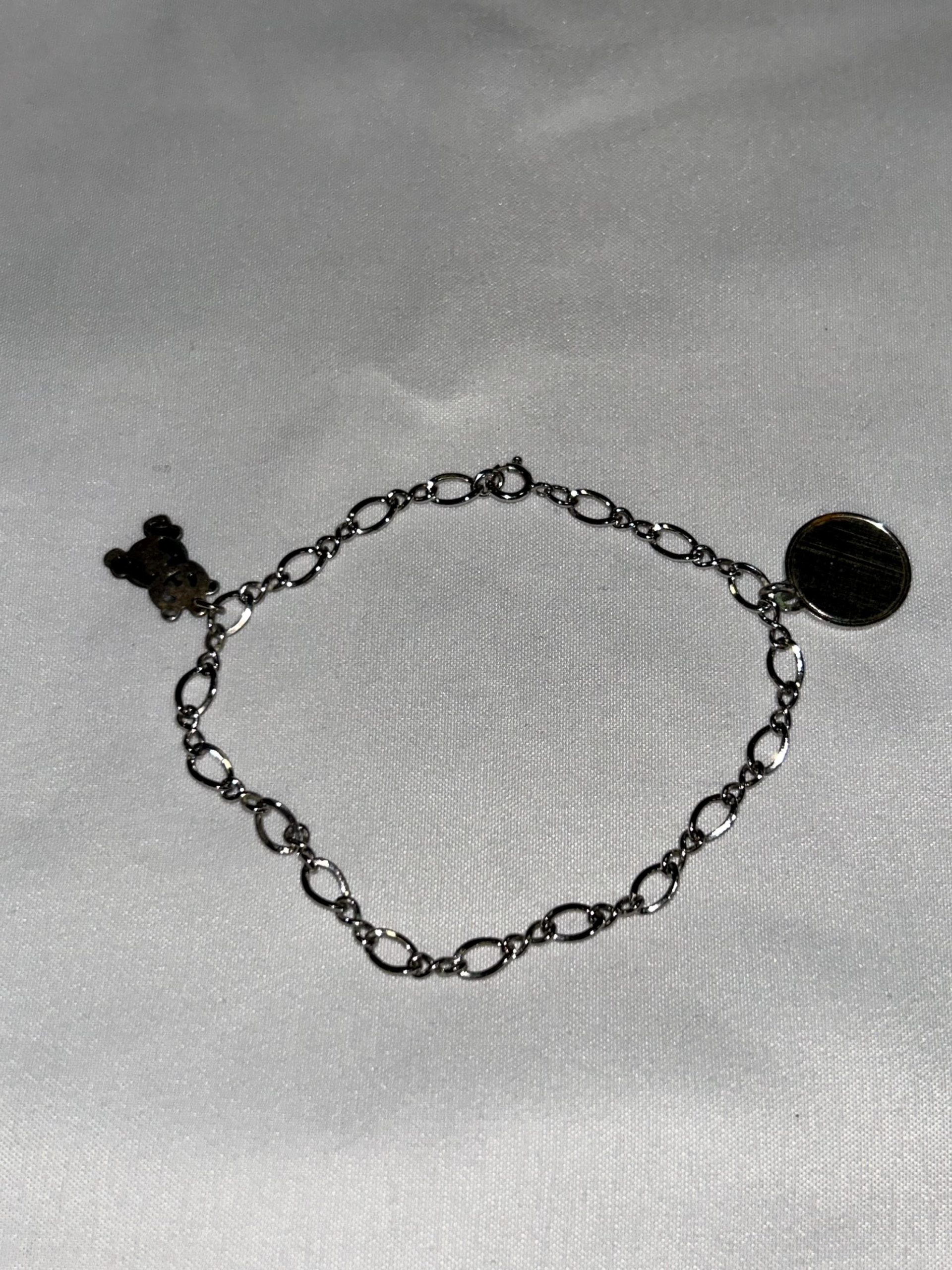 Sterling Silver Chain Bracelet 6″. This bracelet has 2 charms, both Sterling.