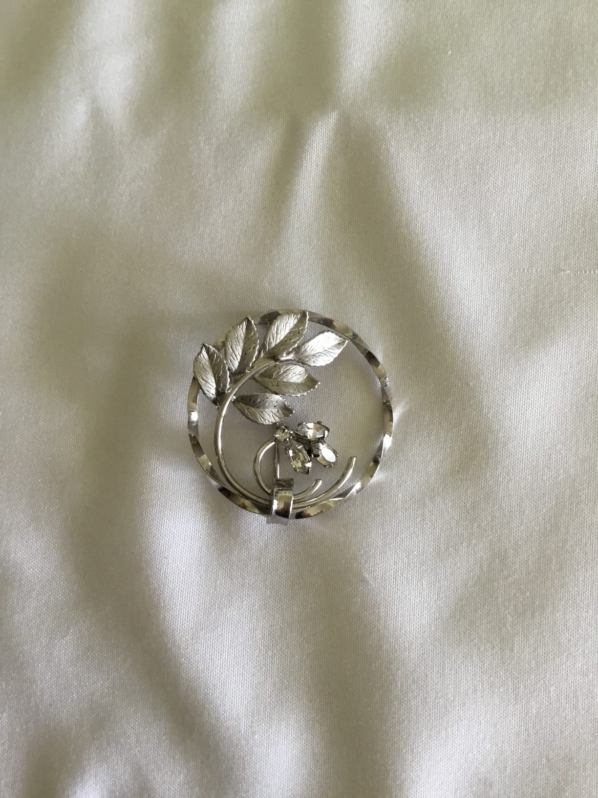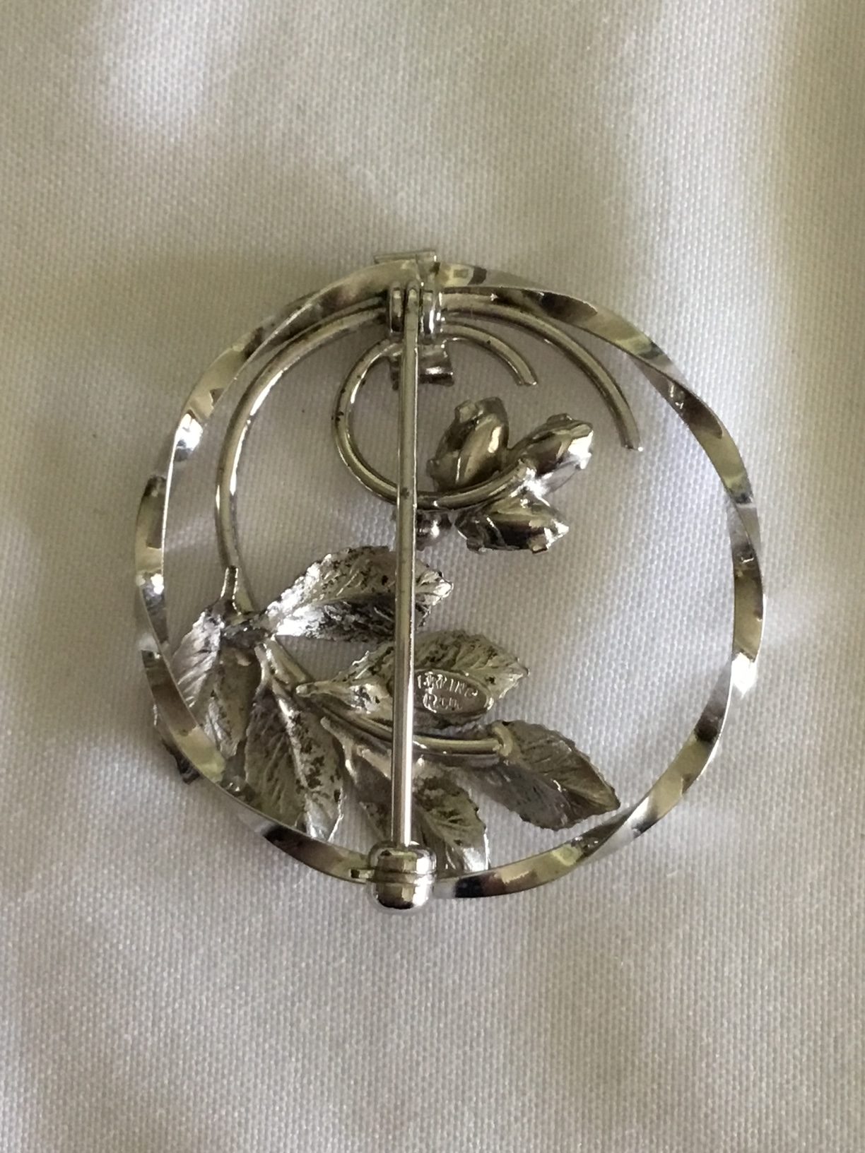 Sterling Silver CZ Brooch. Marked Sterling C.R. Co. 1.25″ in diameter. Sterling Silver CZ Brooch. Marked Sterling C.R. Co. 1.25″ in diameter. This brooch/pin is in “as found” condition and not cleaned by us, leaving the choice of cleaning or not up to its new owner. Please view images for condition and details and grade by your own grading standards. Great gift item.