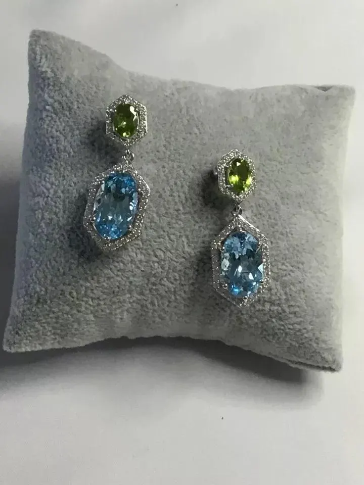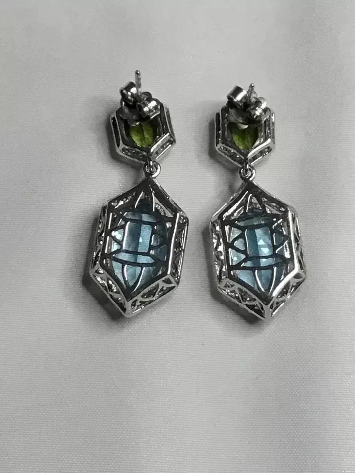 Be the first to review “Stunning Sterling Silver Dangling Earrings w/Aqua, Light Green & CZ Stones”