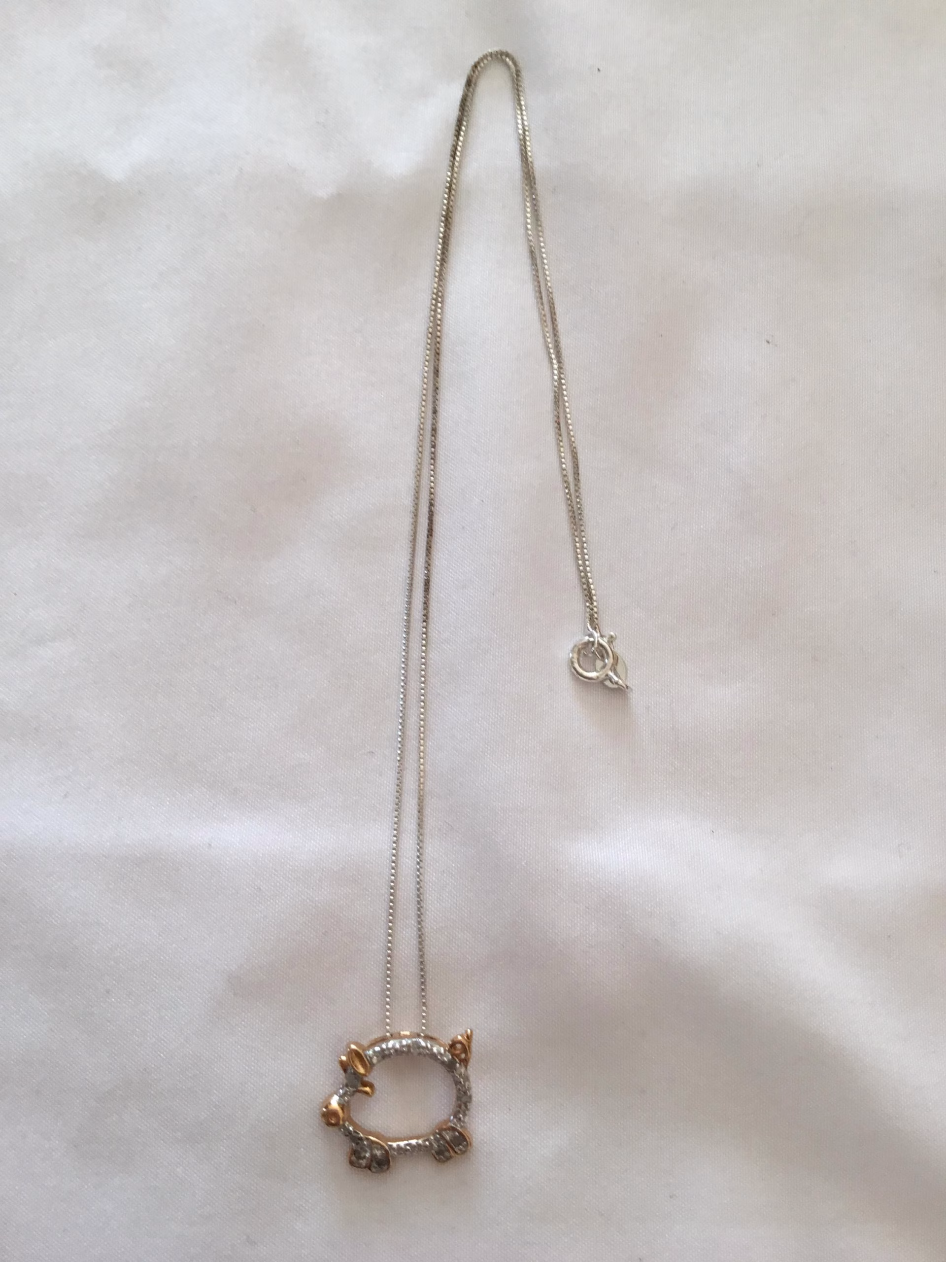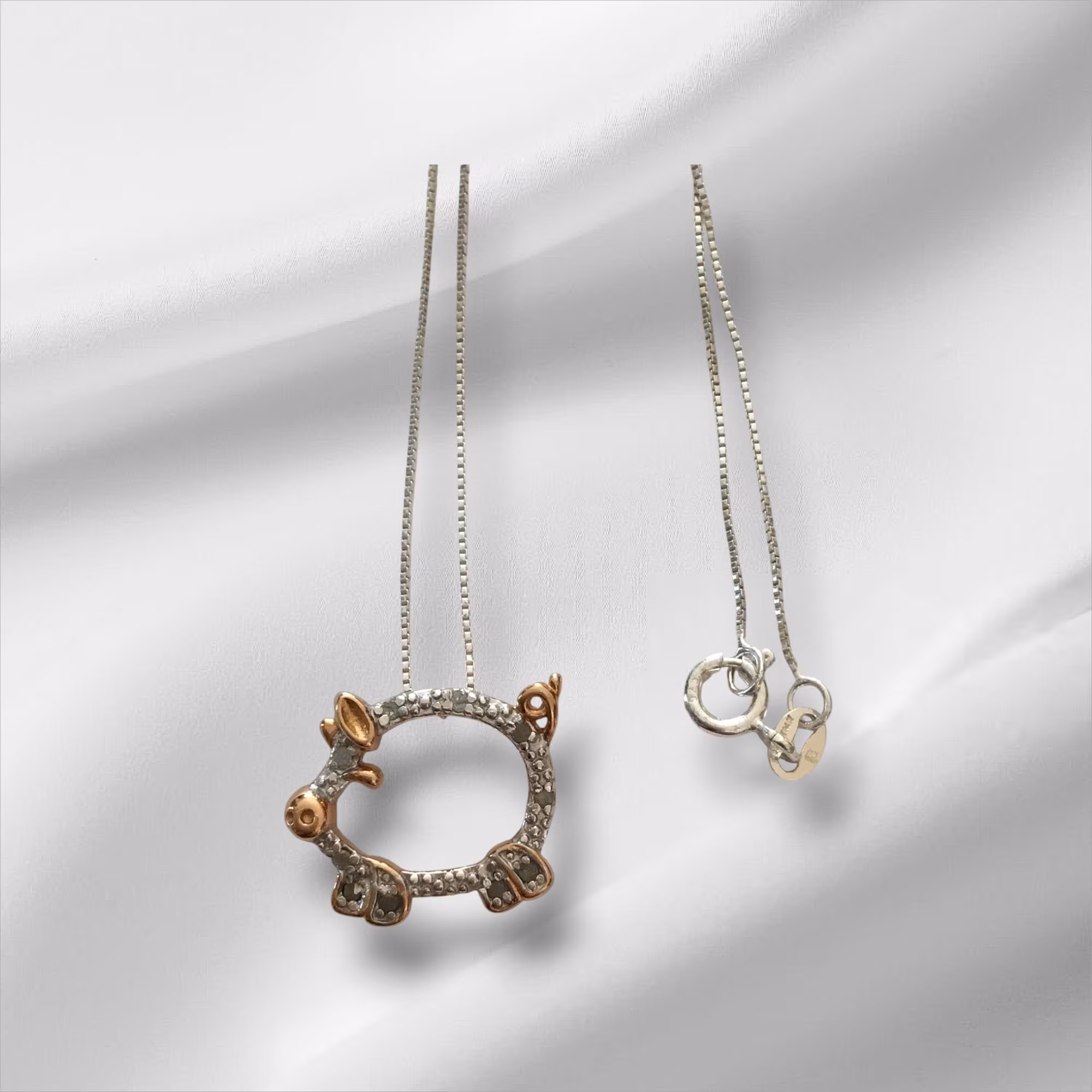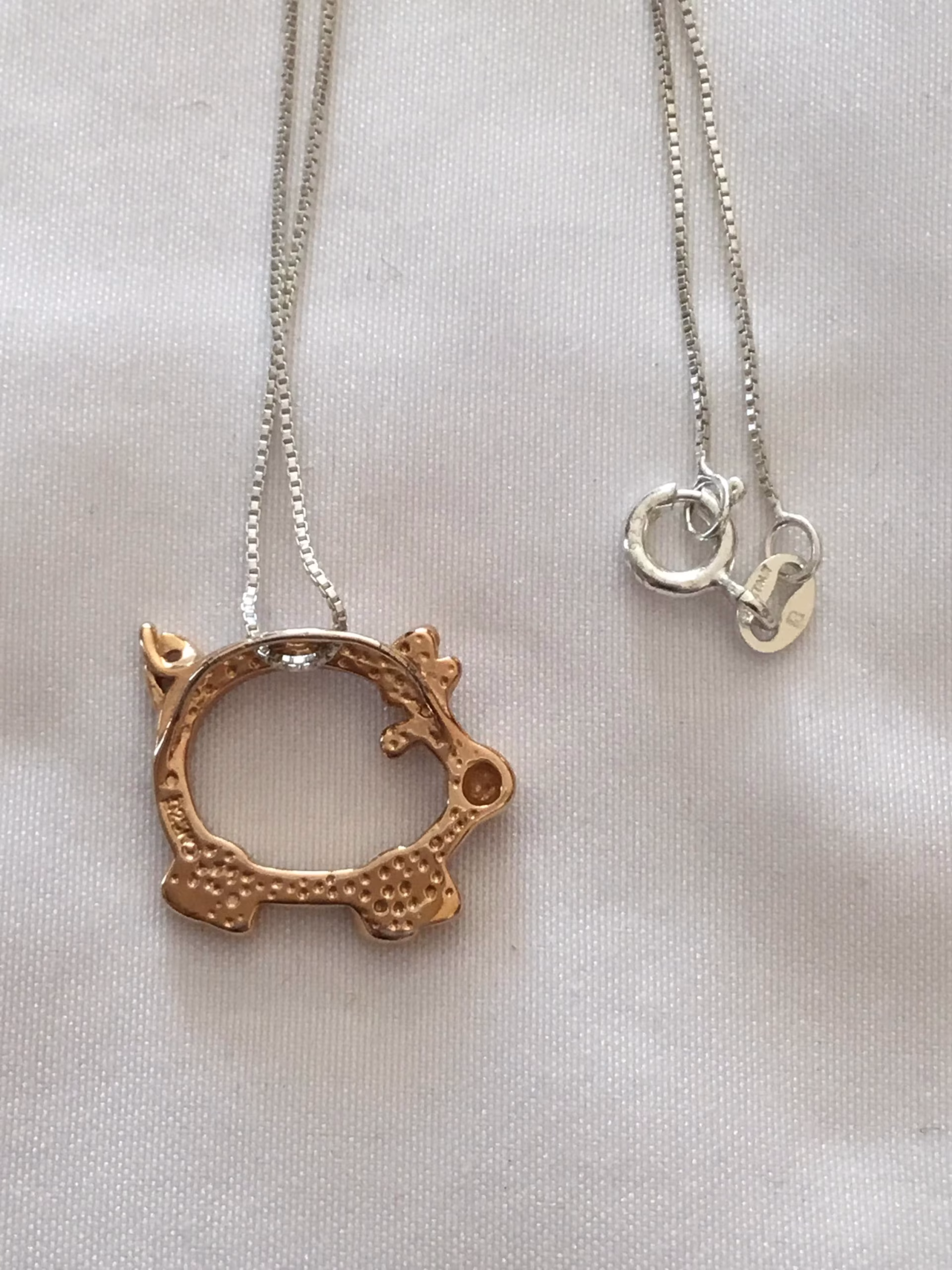 Be the first to review “Sterling Silver Gold Overlay Pig Pendant Necklace, 18””