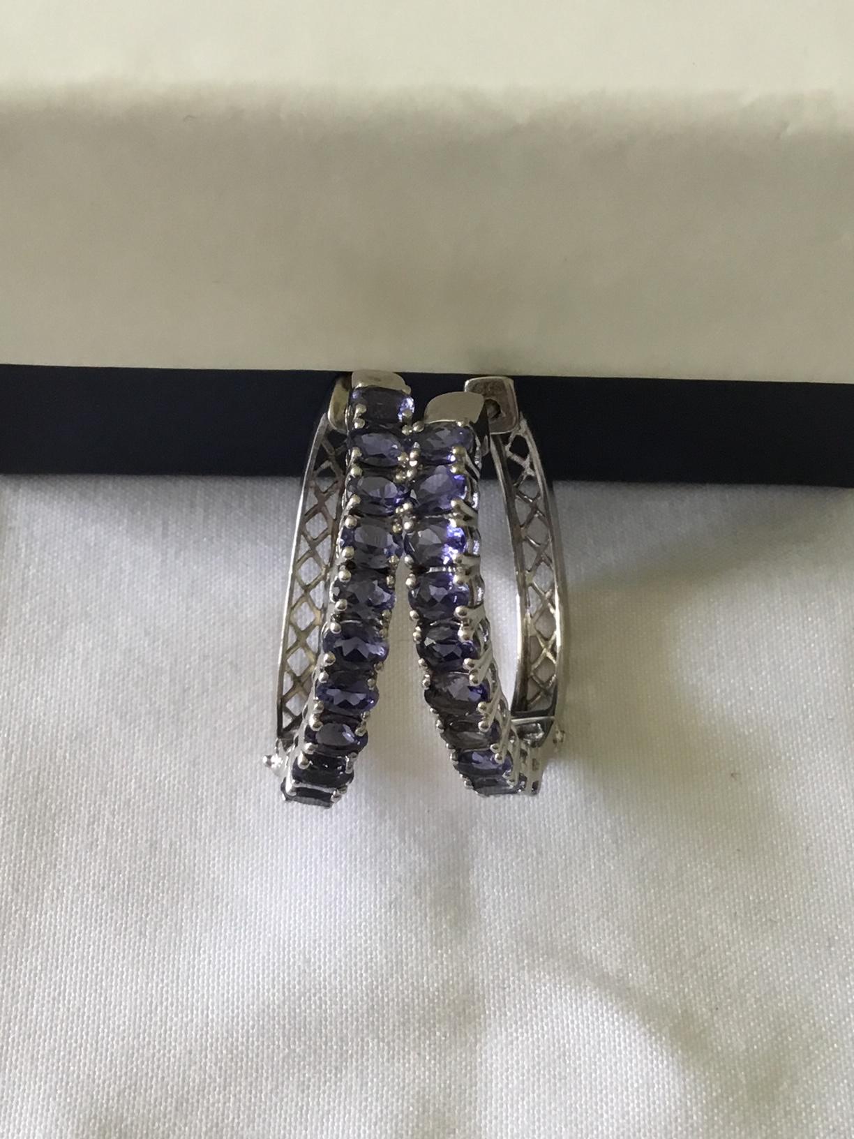 Be the first to review “Sterling Silver Hoop Earrings For Pierced Ears W/10 Light Purple Stones In Each One”