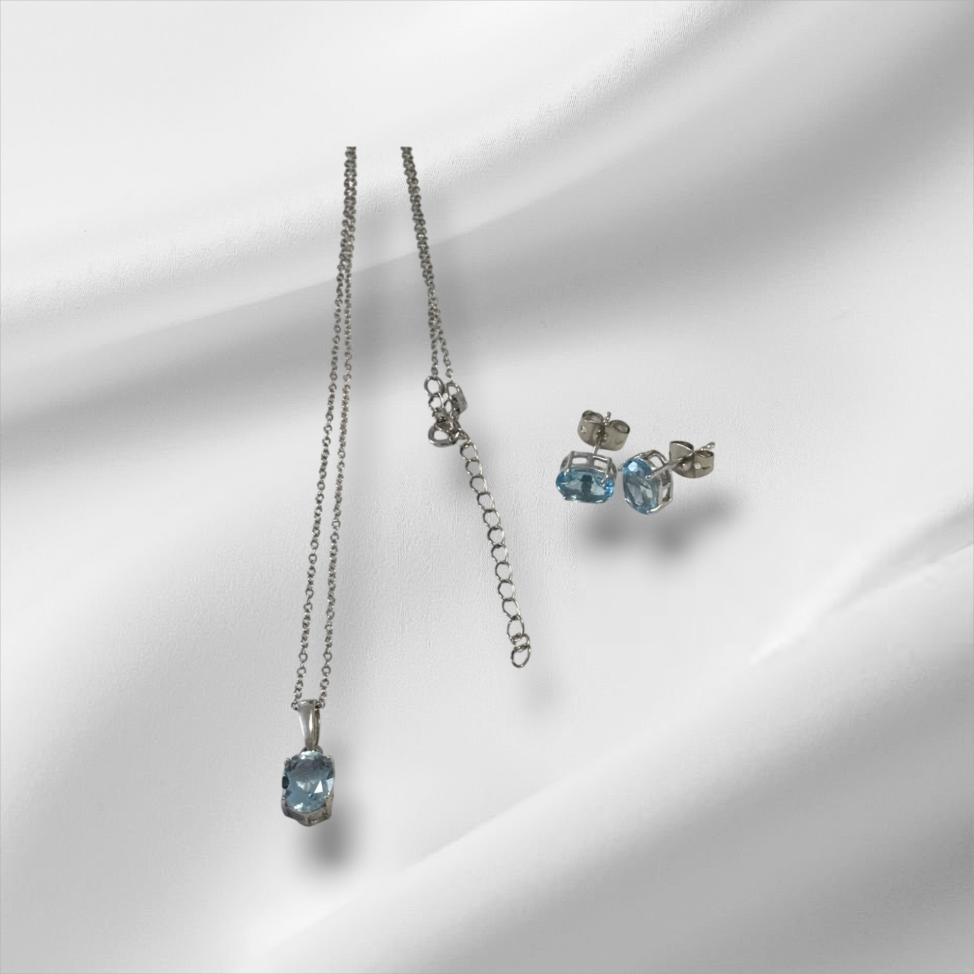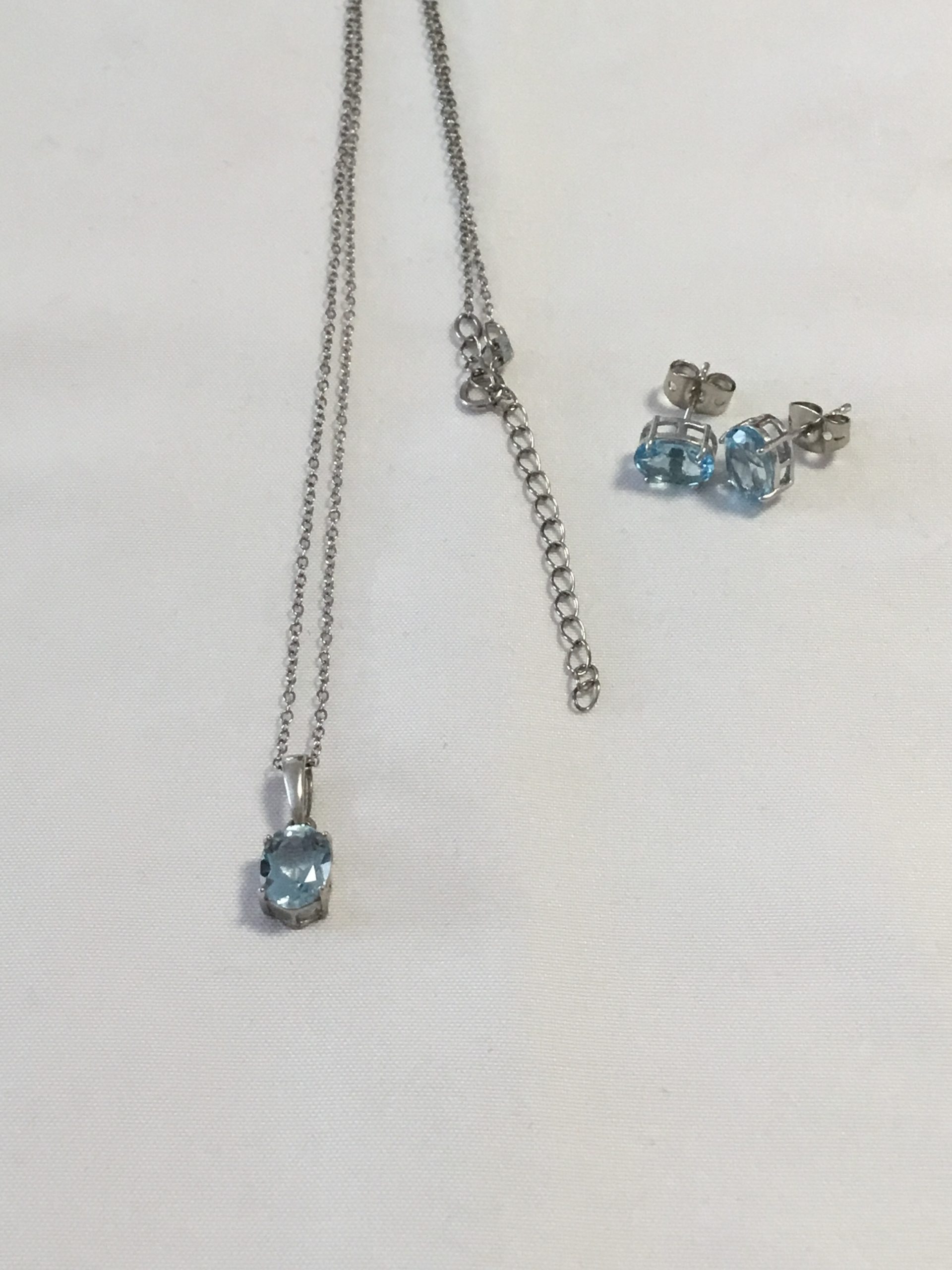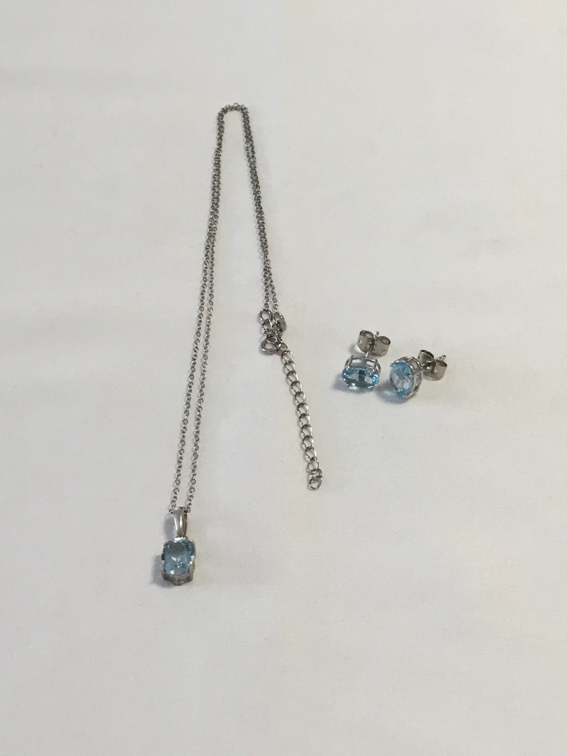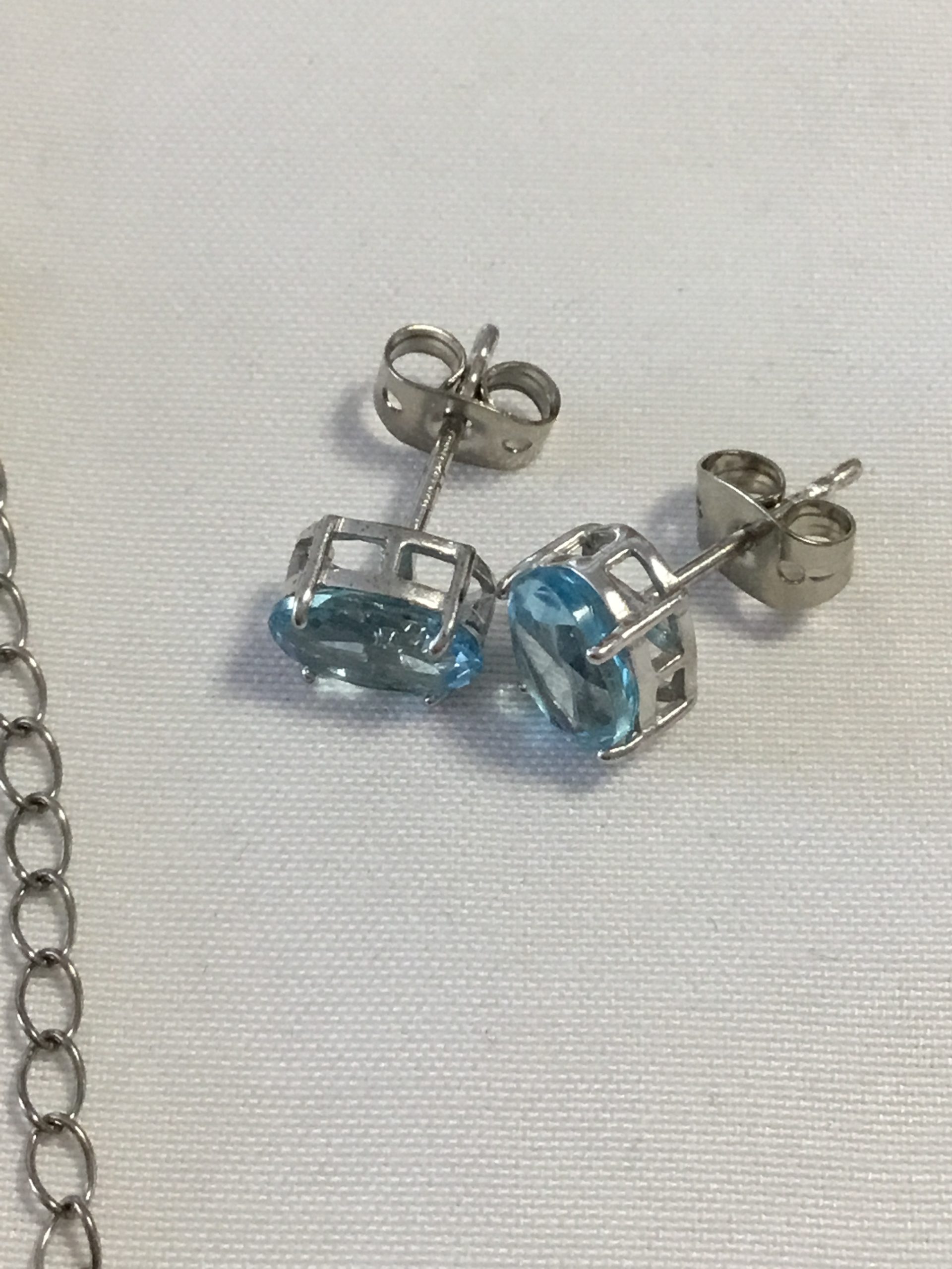 Sterling Silver Necklace w/Blue Stone Pendant and Earring Set. Beautiful set and the necklace is has adjustable length. Please view images for condition and details and grade by your own grading standards. No returns.