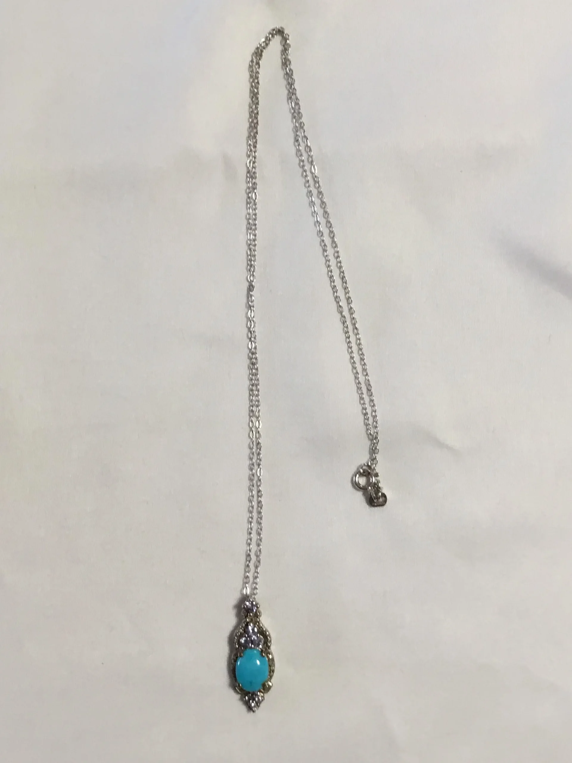 Sterling Silver Necklace w/Turquoise and Purple Stones 20″