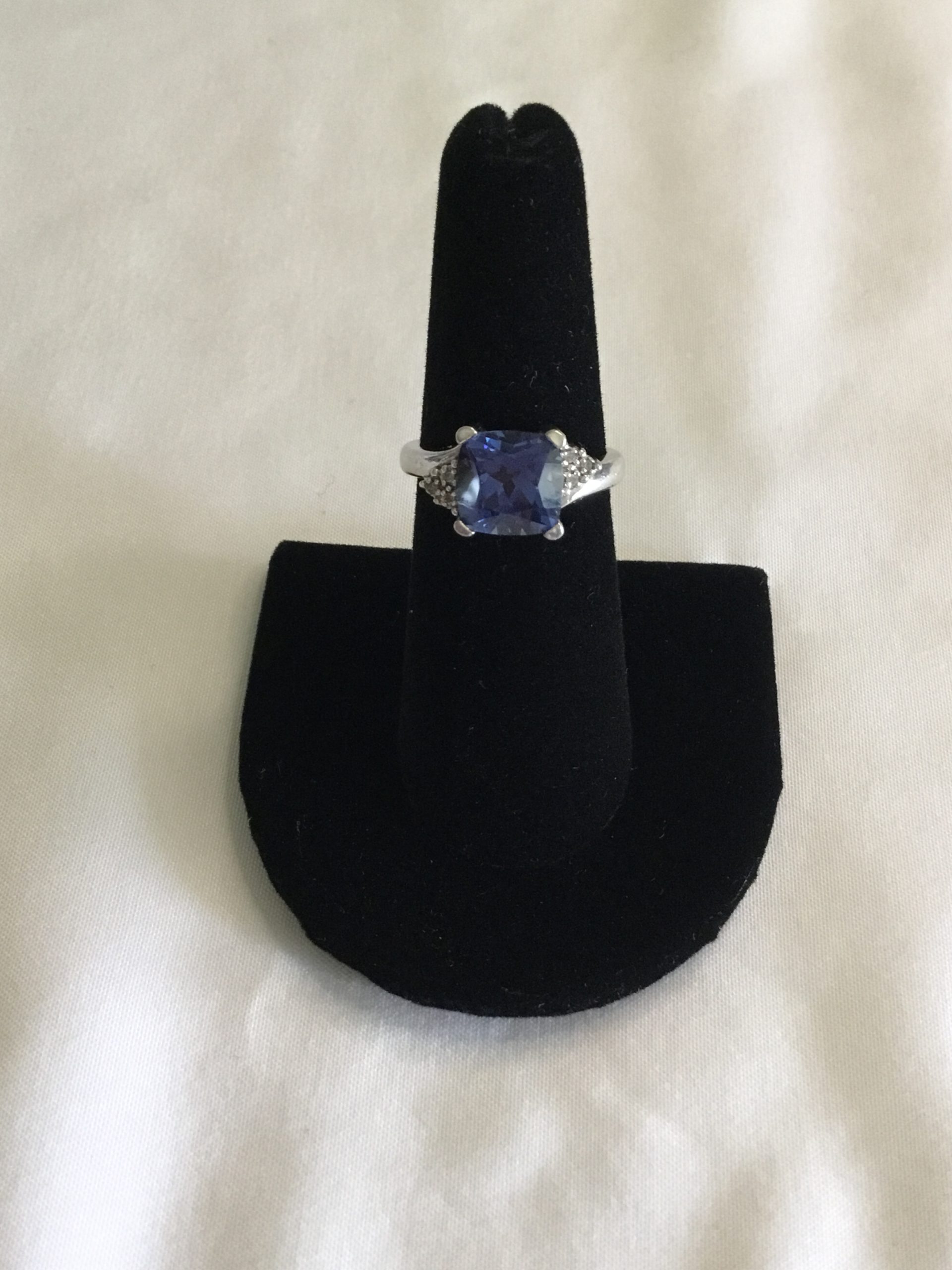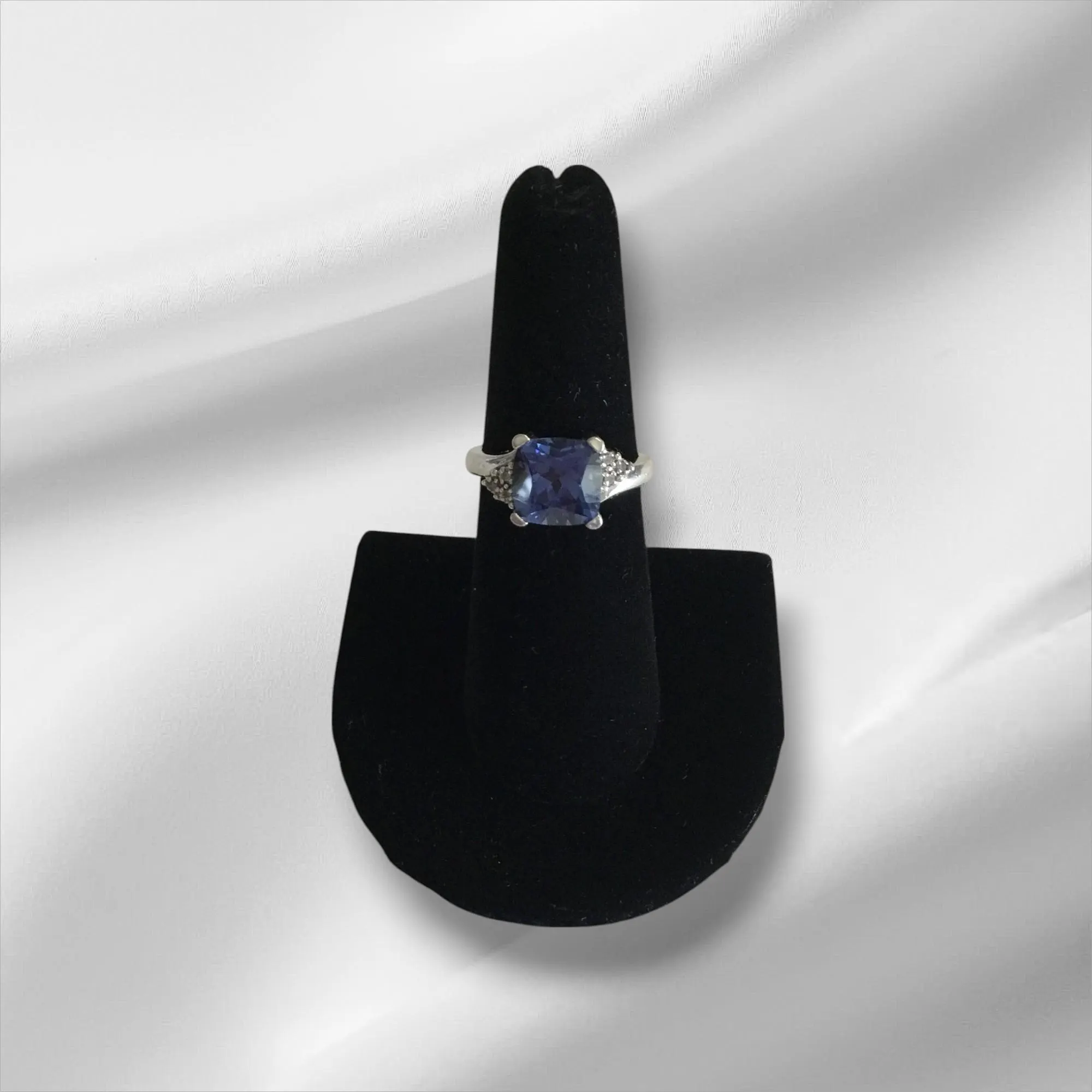 Sterling Silver Ring w/Blue Stone, Size 7