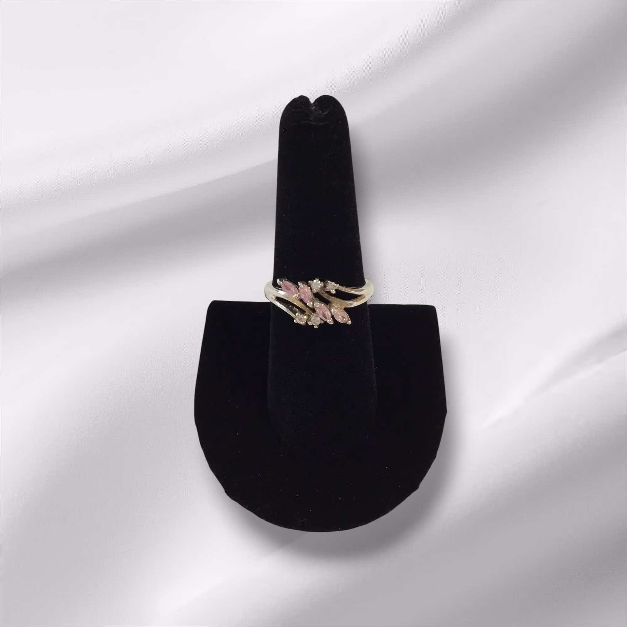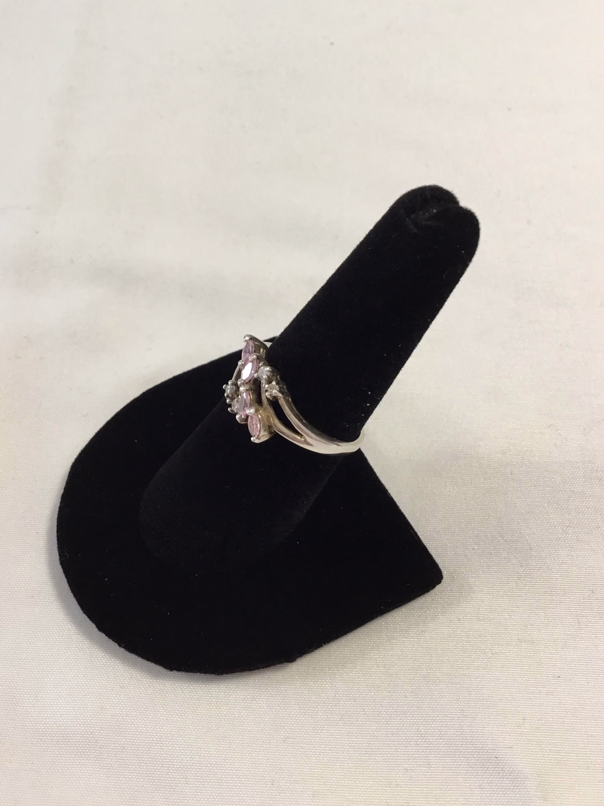 Be the first to review “Sterling Silver Ring w/Pink and Clear Stones, Size 8”
