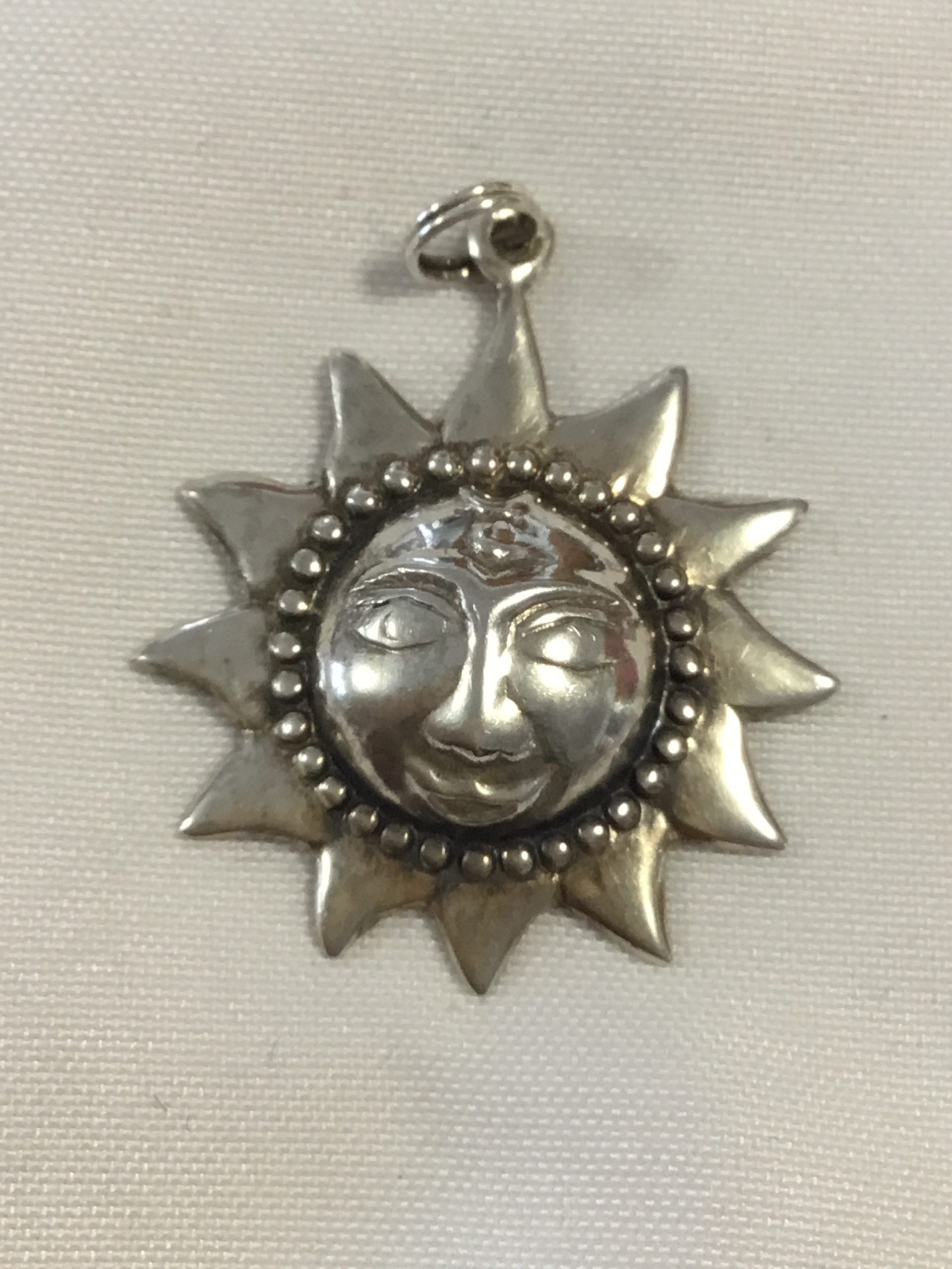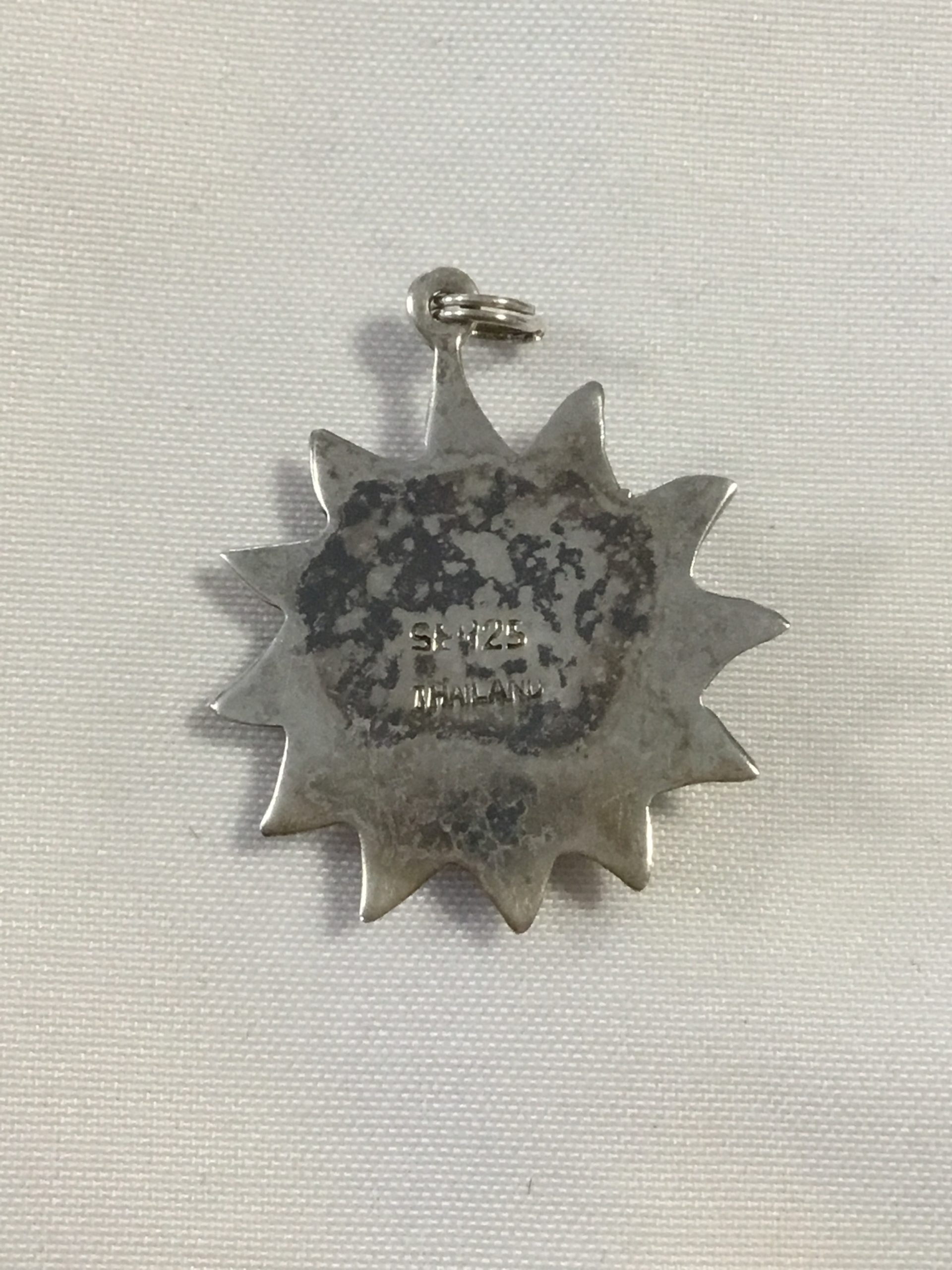 Sterling Silver Sun Pendant, measurers approximately 3/4″. Marked 925 Thailand. Please view images for condition and details and grade by your own grading standards.