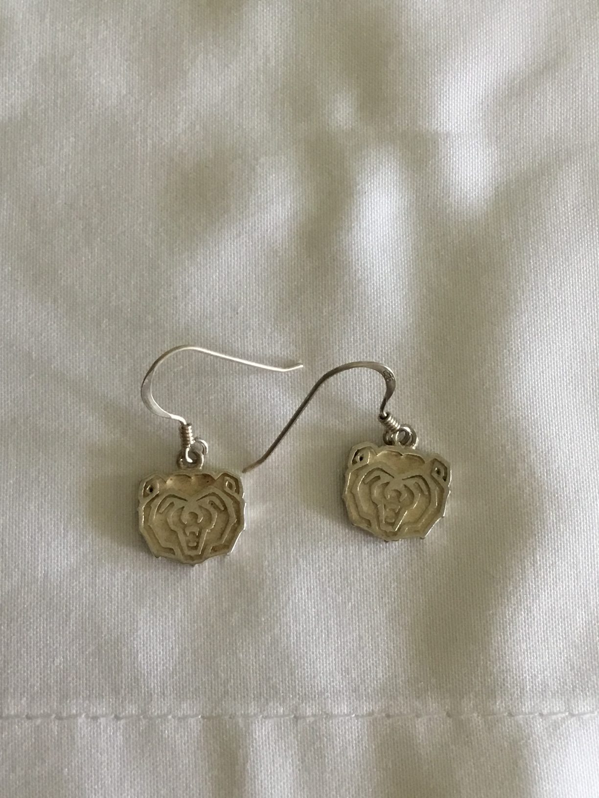 Sterling Silver Tiger/Bear Face Dangly Pierced Earrings