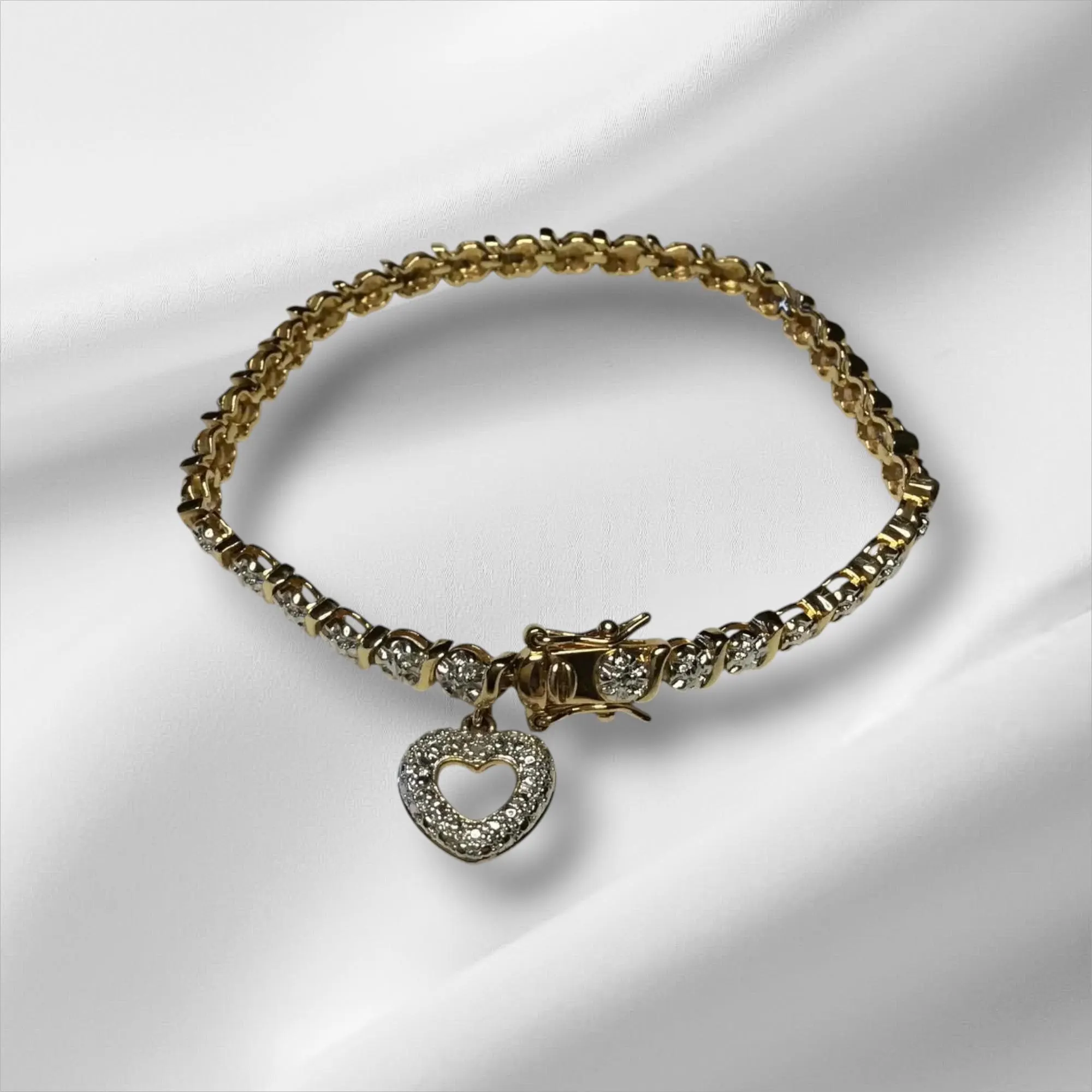 Be the first to review “Stunning Gold Tone Over Sterling Silver Diamond (Real) Bracelet w/Heart Charm 7””